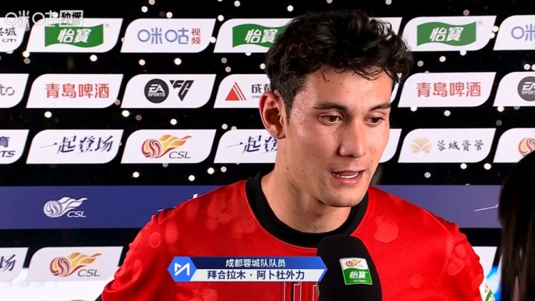 4月25日讯 2026赛季中超第8轮,成都蓉城主场4-0大胜浙江,赛后收获进球的蓉城球员拜合拉木接受了采访。