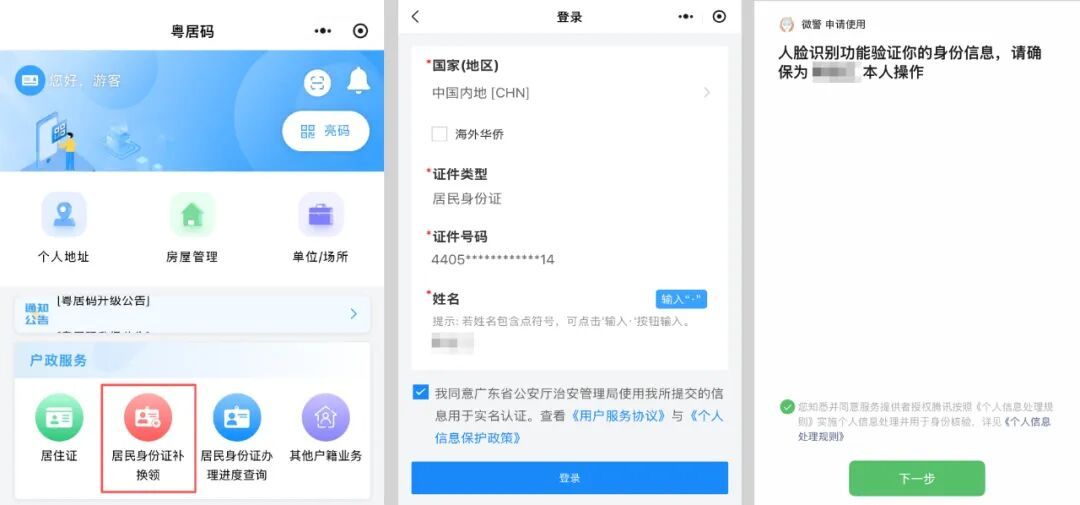 4. 通过“粤居码”小程序实名认证,同意复用历史指纹。