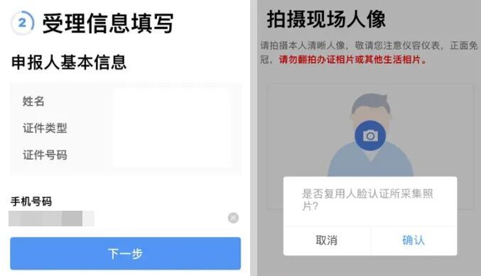 6. 确认身份信息、拍摄现场人像;