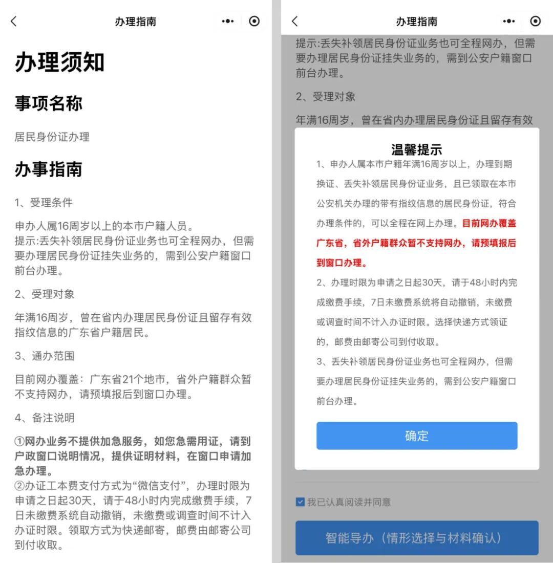 6. 办理进度查询:可在“粤居码”小程序的“居民身份证办理进度查询”查询办理进度。