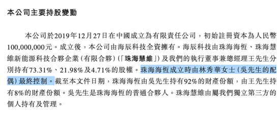 在《招股书》中,海辰储能专门强调,珠海海恒成立时,由吴祖钰的配偶林秀华最终控制。