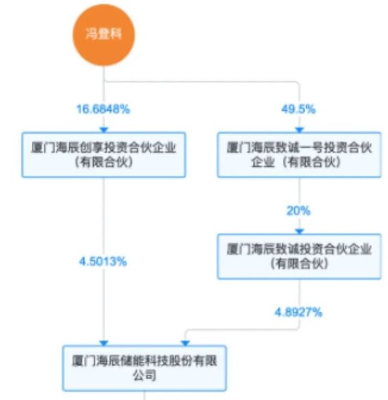 天眼查显示,目前冯登科通过两家持股平台厦门海辰创享、厦门海辰致诚一号持有海辰储能股份。